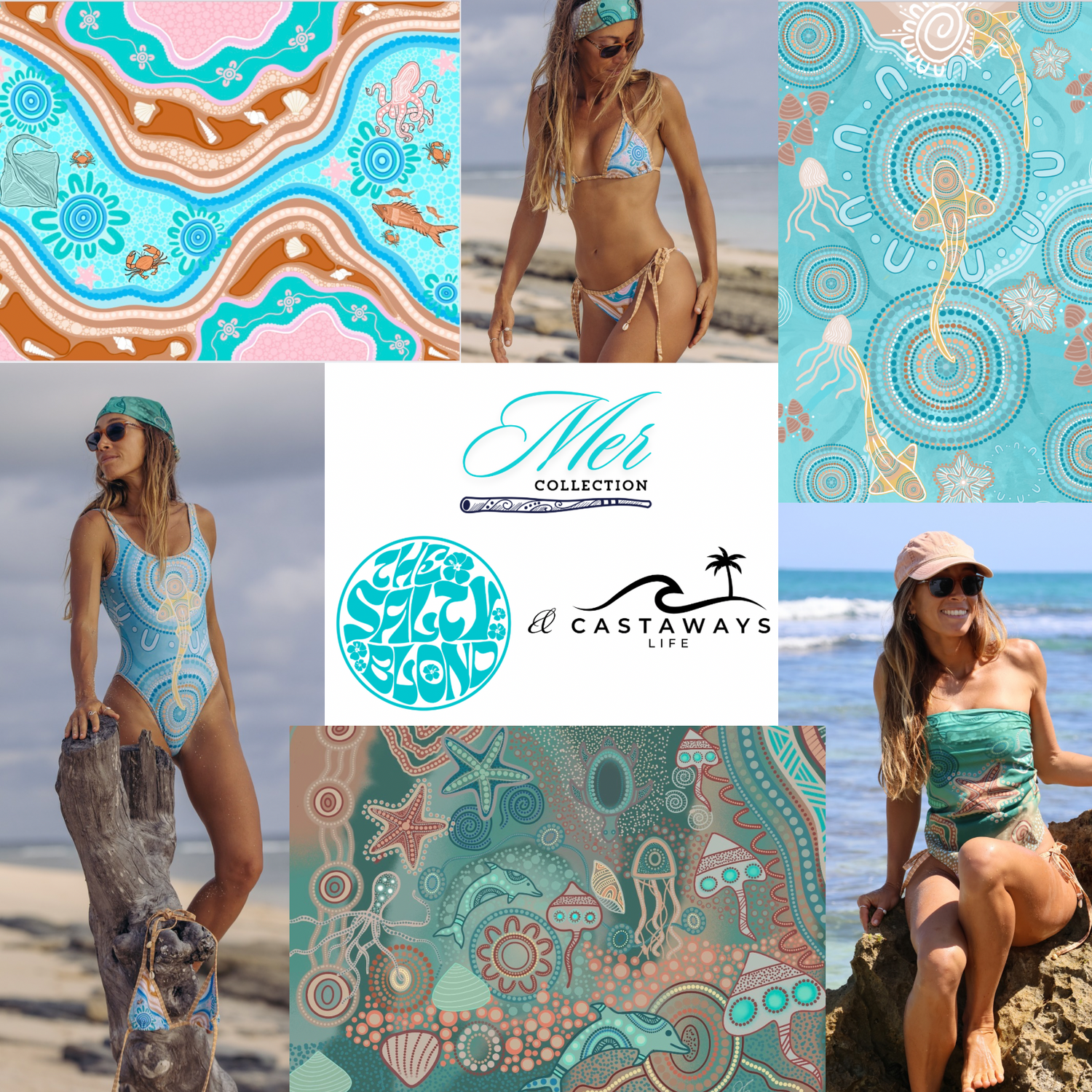 Inspired by the Sea... In this collection we collaborate with 3 different Indigenous Artists to bring their Sea Stories to life on Recycled Swimwear, Hats & Towels.